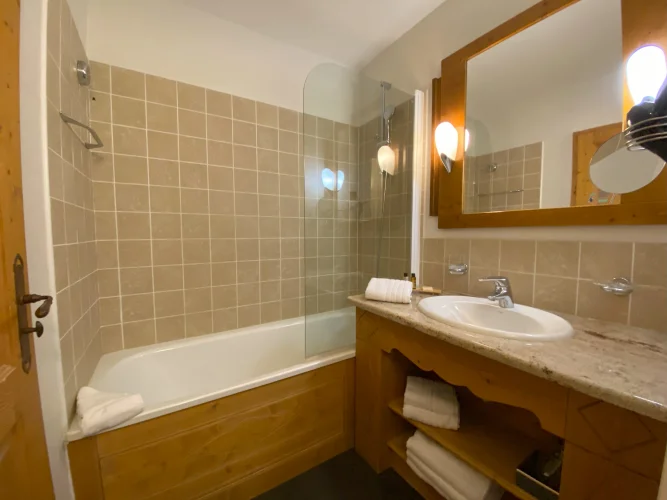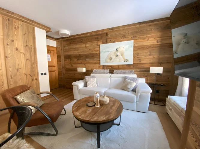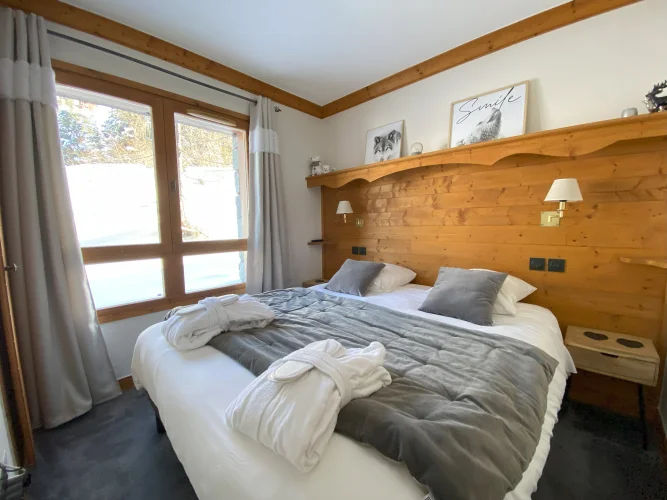 It is composed of a bright living room with open kitchen, a beautiful outdoor space offering a view of the Aiguille Rouge, a bedroom, a mountain area, a bathroom with toilet. Recently renovated with quality materials and furniture, you can enjoy 4 beds separated from the living room.