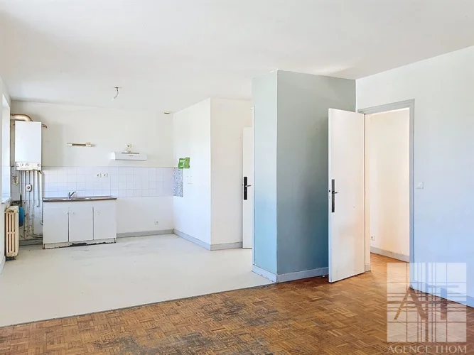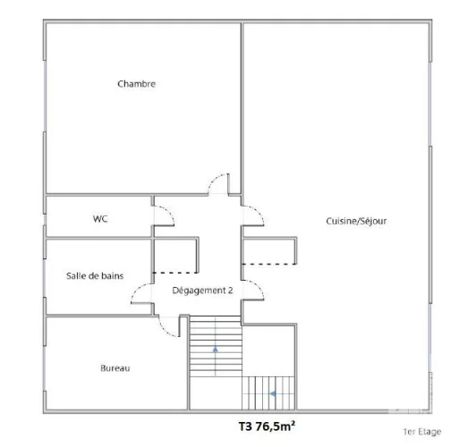 • No 1 : 76.5sqm: needs refurbishment; includes one bedroom, a study, kitchen/living area, bathroom, and separate toilet. Gas central heating. Energy performance D/D.
