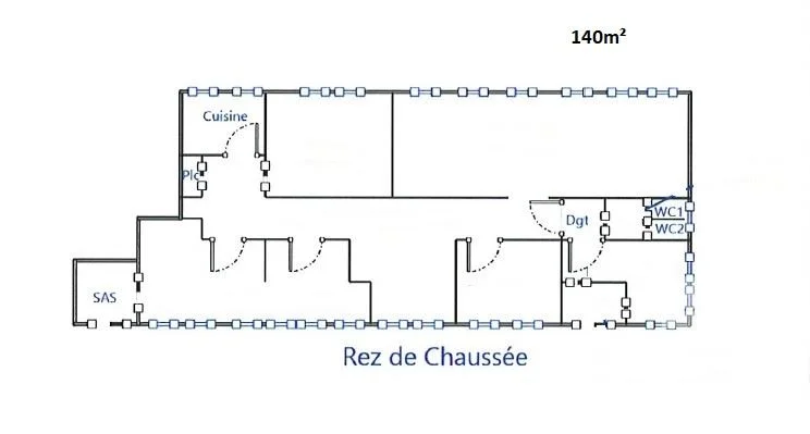 • Right side (140sqm): the former post office, in need of updating, also includes offices and toilets.