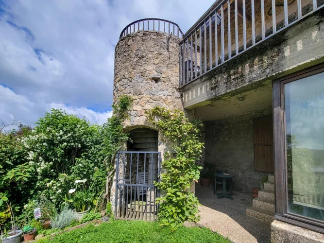 The main house unfolds over three levels and boasts four spacious bedrooms and two bathrooms. A generous 34m² living room features a Jotul log-burning stove in the original stone fireplace, perfect for cosy evenings, while the adjoining dining area opens directly onto a sun-drenched south-facing terrace with access to the garden and sweeping views of the rolling Aveyron countryside. The newly installed kitchen blends seamlessly into the character of the home while offering all modern comforts.