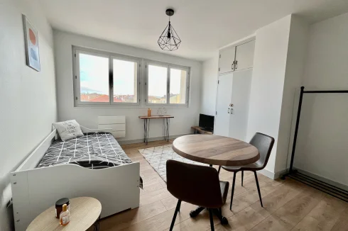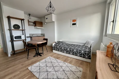 Profitability of 8.48% gross, representing a gross income of €4,200 per year. The fully renovated apartment comprises an entrance hall, a living room with a kitchenette, a bathroom with a toilet, and a balcony.