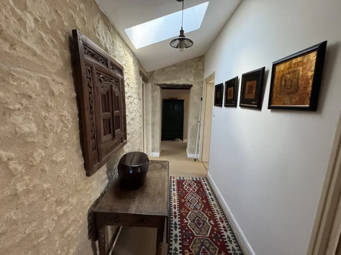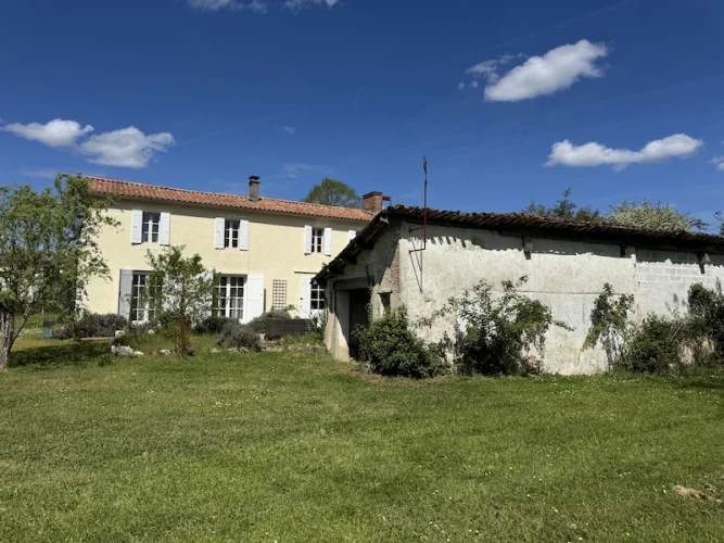This impressive character house with barn has just over 1ha of land. Situated in a quiet hamlet location between Montguyon and Clerac. A detached house with loads of charm and character. There is a lovely, fitted kitchen, dining room, lounge with doors to the terrace, a bar/snug area, cloakroom, the staircase leads to 5 bedrooms, (2 en-suites) and a family bathroom. There is a wooden barn, some smaller outbuildings and a sunken above ground swimming pool.