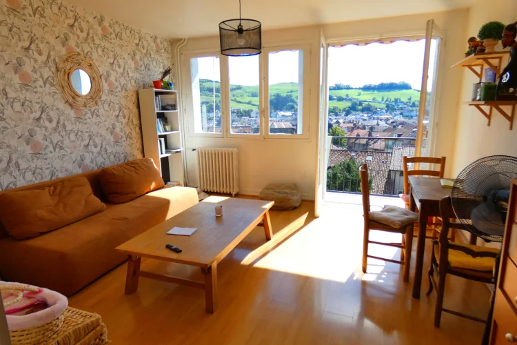 Aurillac, close to the city center. In a secure residence. This beautiful, dual-aspect, bright two-bedroom apartment features a living room with a balcony (very nice open view), a fitted kitchen, two bedrooms, a shower room, a toilet, and numerous closets. A cellar and a secure garage. Georisques: Information on the risks to which this property is exposed can be viewed on the website: