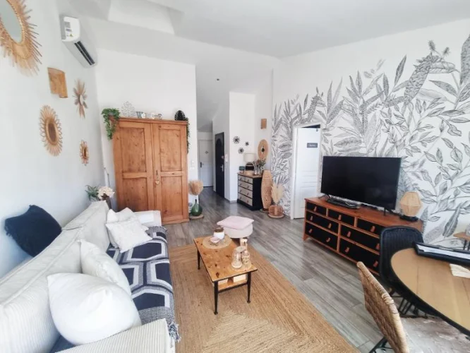 It comprises an entrance hall, a beautiful living room bathed in light through a large bay window opening onto a balcony, and a bedroom opening onto a terrace.