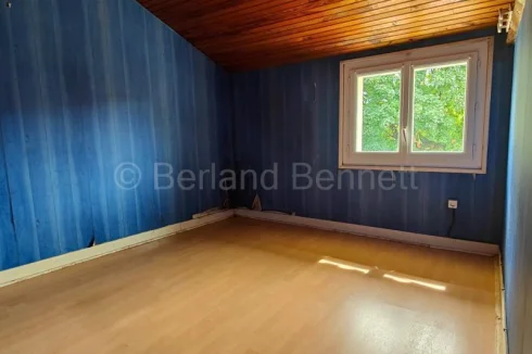 Upstairs, a wide landing opens onto two cozy bedrooms of 10 m² with floating parquet floors, while a hallway leads to two further bedrooms of 11 and 12 m² and a second WC, complete with washbasin and bidet.