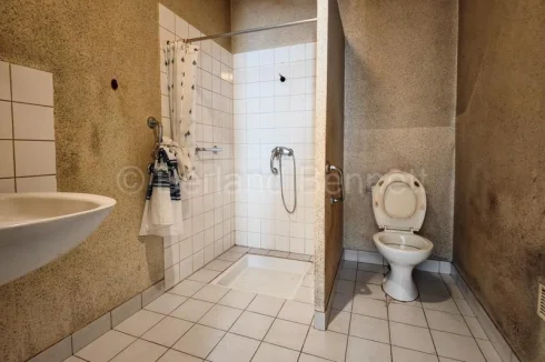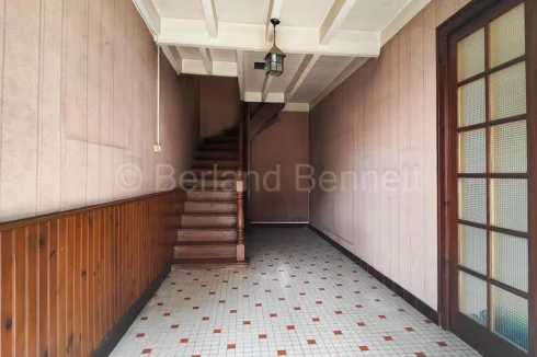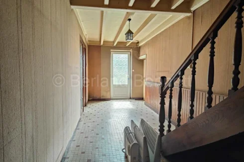 Ground floor: spacious entrance hall featuring a wooden staircase, leading into a bright tiled living room, a generous kitchen extended by an adjoining room, as well as a shower room with WC and a large utility/laundry room directly connected to the kitchen.