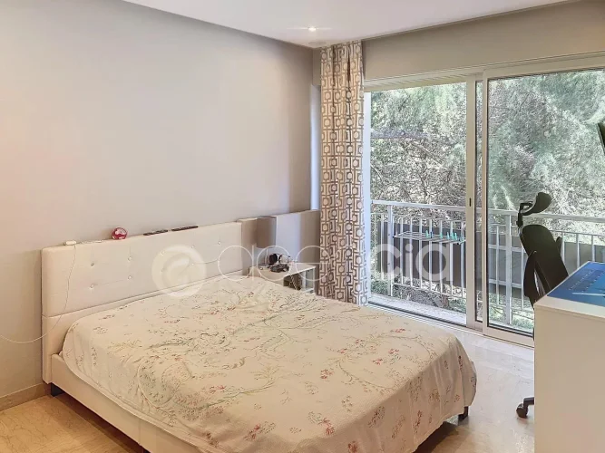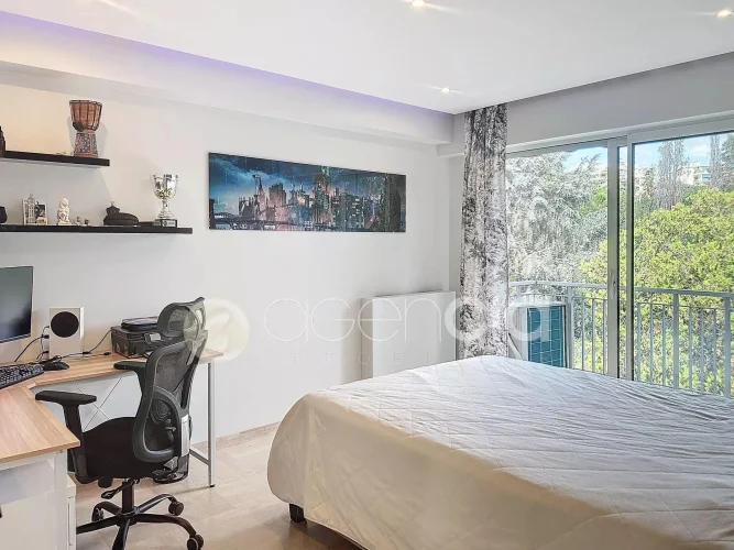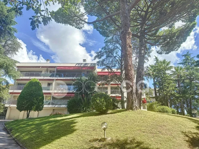 In a secure luxury residence nestled in a 1.2-hectare private park, discover this superb, bright apartment on the top floor, in a peaceful location just a 17-minute walk from Rue d'Antibes.