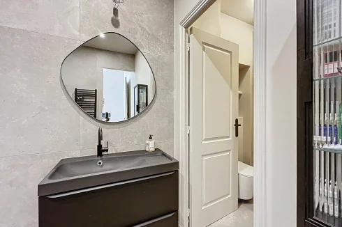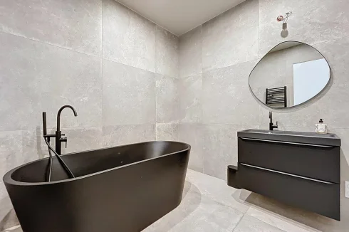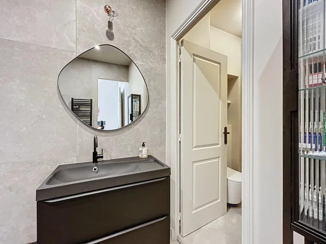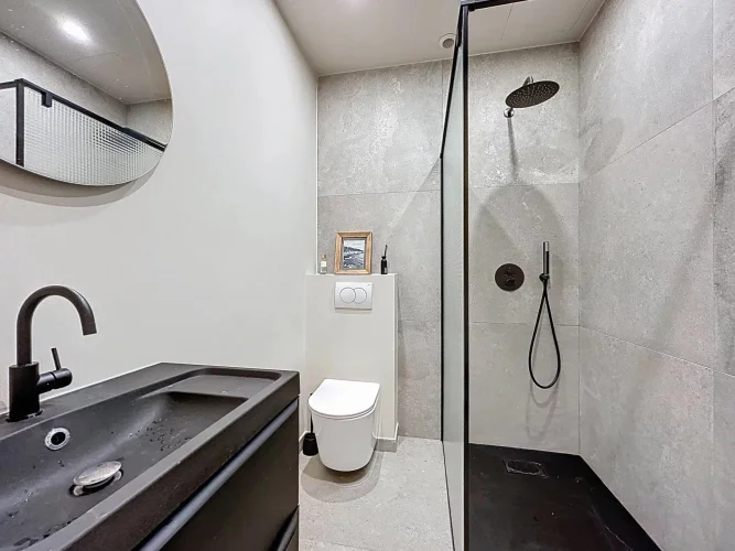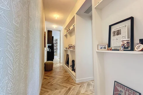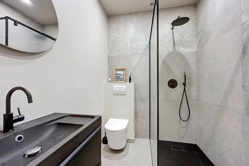 The apartment offers approximately 100 m² of beautifully renovated living space, combining timeless elegance with modern comfort. A bright and spacious living room with open-plan kitchen creates a warm and inviting atmosphere, while the master suite with bathroom and toilet ensures privacy and comfort. A second bedroom with shower room and toilet completes the layout, ideal for family or guests.