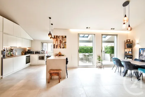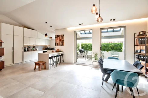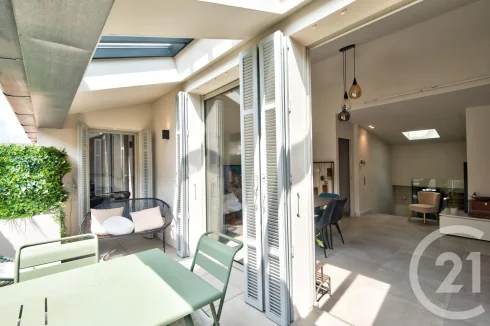 Nice - Centre: Superb duplex of 133 m2 with terrace located on the top floor of a building entirely rehabilitated in the heart of Nice. This apartment combines elegance, comfort and modernity. Accessible by a private elevator, it is composed of a large living room facing south opening onto a beautiful terrace. A perfectly equipped kitchen fits harmoniously into the living space. The apartment has 4 bedrooms, 2 shower room and a bathroom, 3 Wc as well as plenty of storage. High-End services and refined finishes will offer you an ideal setting, quiet in the heart of Nice. A cellar complete this rare property.