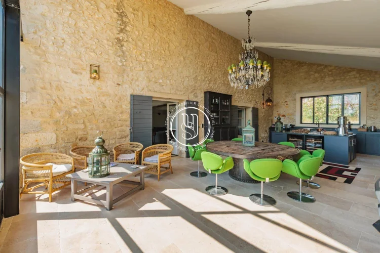 A unique opportunity to acquire an exceptional olive-growing estate in Provence Two Mas ideally located between Alpilles and Montagnette, just 15 minutes from Avignon Tgv station. Treat yourself to a rare and authentic immersion in the heart of Provence, between the prestigious towns of Saint-Rémy-de-Provence and Avignon. This exceptional olive-growing estate invites you to enjoy a truly sensory, cultural, and heritage experience centered around the olive, the region& 39 s living emblem. This remarkable estate covers 22.5 hectares, including 17 hectares of olive trees in full production, cultivated with passion and expertise. Here you enter a Provençal art of living, blending nature, serenity, and terroir. The property consists of two farmhouses, including a 475 m² farmhouse from the 19th century that has been elegantly restored. Exposed stone, generous volumes, and natural light flood the spaces, offering modern comfort without detracting from the authentic spirit of the place. The second farmhouse, measuring approximately 110 m², is completely independent and is ideal for entertaining guests. The highlights of this superb property: Two Provençal farmhouses, tastefully renovated, offering multiple living, hosting or operating possibilities A 17 ha olive grove in full production, a guarantee of profitability and commitment to an olive growing activity of the future A breathtaking view of the Alpilles, a true living picture of Provence A rare setting, combining natural beauty, heritage and economic potential Ideal for nature and olive growing enthusiasts or those looking to retrain, this estate is an invitation to experience Provence in a different way. A rare opportunity to acquire an olive oil gem in one of the most beautiful settings in the South of France. Dpe secondary mas: 128 kWh/m2/year and 4 kg CO2/m2/year