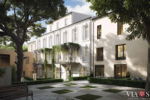 In a green and historic setting, in the heart of Pezenas, discover 12 exceptional apartments, all fully air-conditioned and equipped with fitted kitchens, designed as unique pieces.