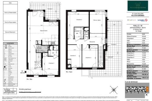 Incredible 4 bedroom apartment in duplex with 2 garages ! Other lots and floor plans are available on request. Located in the inner suburbs of Paris in the Hauts-de-Seine department, Suresnes is ideally situated on the banks of the Seine and less than 15 minutes from Paris. It is close to shopping streets, schools and administrative, cultural and health services. Come and discover a new construction of a development comprising 238 apartments in 8 buildings, a co-living residence, a 4-star hotel and parking facilities on 3 basement levels. Quai Gallieni/rue Benoît Malon/rue Salomon de Rothschild, just a stone's throw from the Seine, Metamorphose is a beautiful residential development bordered by a planted green space. You'll love the beautiful studio to 5-bedroom flats and villa flats with generous outdoor spaces : balconies, sky terraces or private gardens. You'll enjoy a landscaped inner courtyard and, for some, beautiful, unobstructed views of the Bois de Boulogne, La Défense and Mont Valérien. In this leafy setting, which will include green roofs, through-ground gardens and a pedestrian walkway, you'll be less than 10 minutes from the town centre's shops, schools and public, cultural and sports facilities. The Tram T2 Belvédère stop is 600 m away, providing easy access to La Défense (Rer A, M1, Transiliens L and U). By 2030, the Rueil-Suresnes Mont-Valérien station will also be available. The residence will be Nf Habitat Hqe and Biodivercity® certified.