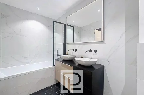 The gated and secure residence offers its residents a swimming pool and green spaces designed by a landscape architect.