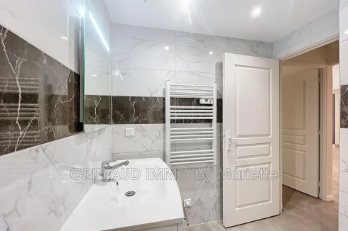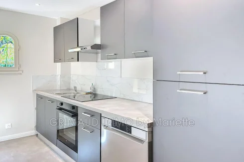 Magnificent garden level renovated in 2025, 5 minutes from the beaches of Cavalaire. This property consists of a bright living room opening onto a new and modern kitchen, offering direct access to a magnificent teak terrace, and the garden. A comfortable bedroom with storage and air conditioning, as well as a completely renovated bathroom with walk-in shower, complete this apartment. The beautifully landscaped garden and electric gate ensure privacy and security. A closed garage in the basement and a cellar are also included, offering additional storage space. Recent renovation (March 2025)