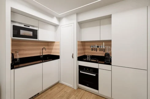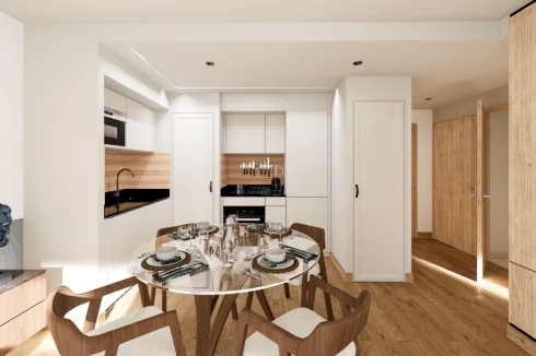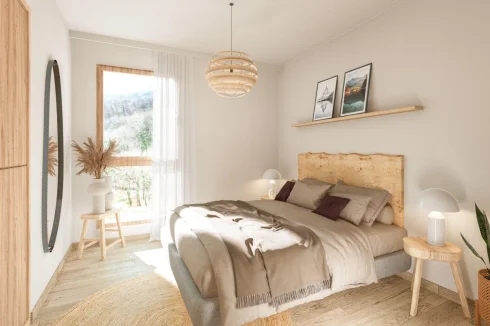 It comprises an en suite double bedroom and a kitchen opening onto the living room with uninterrupted views of the mountains.