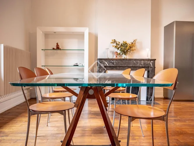 Exclusive to Lucas Fox International Properties, exceptional apartment in the heart of Montpellier's Écusson district. Just steps from Place de la Comédie and the Musée Fabre, on the second floor of a remarkable private mansion by a renowned architect, lies a superb renovated apartment, ideal for entertaining guests. The access has a spacious entrance gallery and a triple reception room with open views and excellent brightness thanks to its living room, its dining room with an open kitchen and island, and its office. The apartment also has three bedrooms with views of the gardens, two bathrooms (with the possibility of a third), a laundry room and a guest toilet, which together make up 178 m². It also offers incredible features, such as 3.6 meter high ceilings, solid parquet floors, arched windows, marble fireplaces, crown moldings, exterior views of gardens, a service staircase and two basement cellars (10.66 m²). A quiet location in the city center for a unique apartment. Information on the risks to which this property is exposed is available on the Géorisques website.