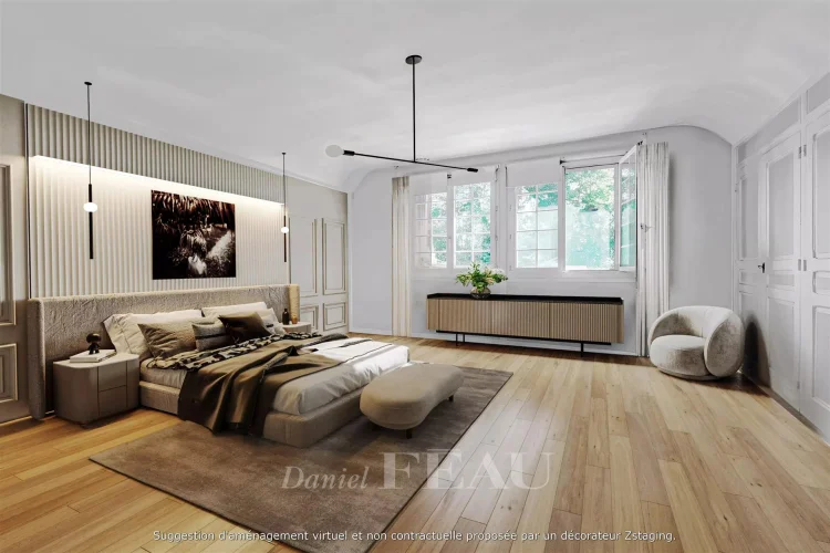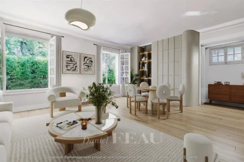 This 244 sqm apartment is on the 1st floor of the "Manoir de Buzenval", an elegant early 20th century building located near Saint-Cloud golf course.