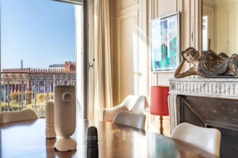 This bright and elegant 222.30 sqm apartment on the 5th floor of a perfectly maintained early 20th century building with a caretaker and a lift enjoys a superb view of the Jardin des Grands-Explorateurs. Featuring 3.20 metre high ceilings, Herringbone parquet flooring and a fireplace, it includes an entrance hall, a living/reception room, a west-facing dining room opening onto a balcony, a kitchen with dining facilities, five bedrooms and three shower rooms.