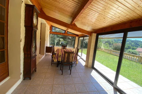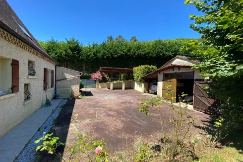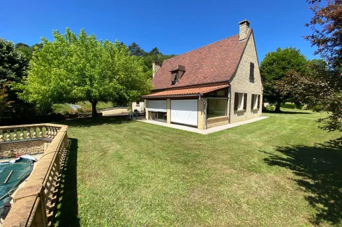 On the heights of Sarlat, 5 minutes from the Medieval City, contemporary Périgord with a gîte. The house is composed of an entrance, living room with a veranda, kitchen, 4 bedrooms and 2 bathrooms. Cellar/Boiler room. 2 garages. Motorhome shelter. Yard. A 25 m² gîte to refresh. Swimming pool. South facing. Roof redone in 2015. The whole on a beautiful wooded and enclosed plot of about 3000 m², of which 1000 m² is buildable. Sylvia Planes (Ei) Commercial Agent - RSAC number: - .