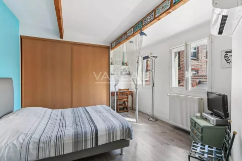 Close to the town hall and Boulevard Jean Jaurès, this 185.86 m² Carrez character loft will surprise you with its spaciousness and calm. Located on the top floor with elevator, it features a very large 95 m² reception room with over 6 m high ceilings, divided into 3 areas: living room with fireplace, relaxation area and kitchen/dining room. Patio out of sight. On the same level, you'll find a master suite with shower room and dressing room, a second bedroom (or study) with storage, separate Wc and laundry room. Upstairs, a landing leads to two bedrooms and a shower room. A large cellar and the possibility of an additional parking space in a nearby building.