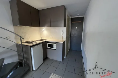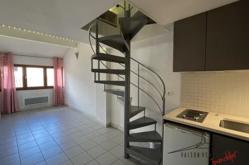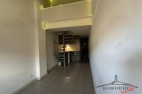 In the center of Vaison la Romaine, on the 2nd floor of a small condominium with all shops nearby, we offer you this T2 duplex apartment of 31 m2 including an equipped kitchen, a living room of 16.50 m2, an independent bedroom and a bathroom with toilet.