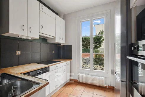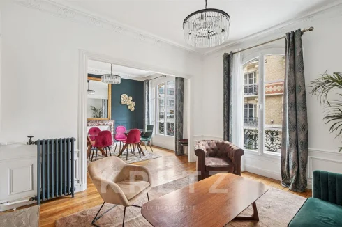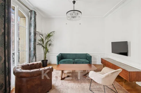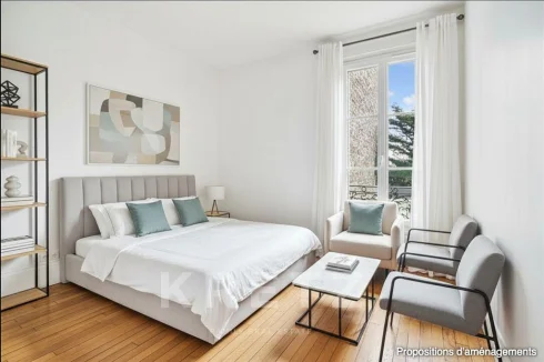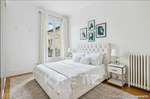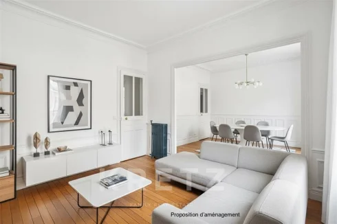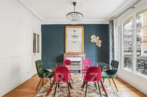It combines the charm of the old with its parquet floor, its moldings, its fireplace and a ceiling height of 2.70 m.
