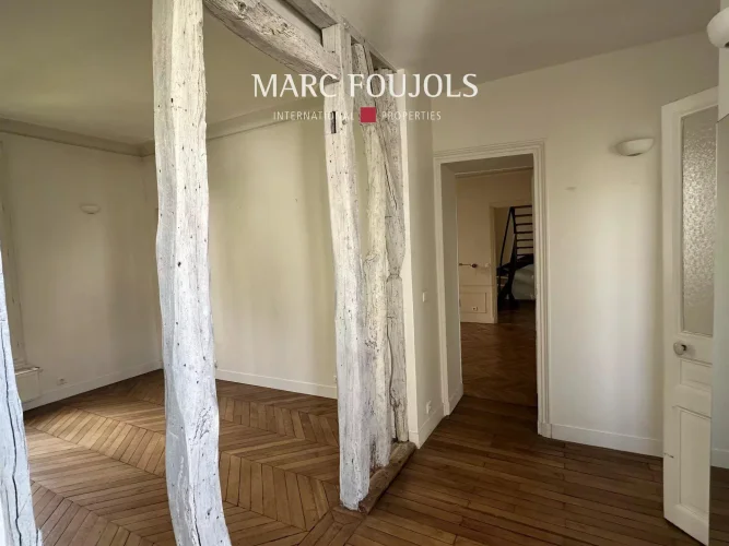 Currently resulting from the merging of two lots (still legally distinct), the apartment offers strong potential for renovation or redivision.
