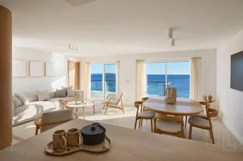 Occupying a generous 123 square metres, the apartment has been thoughtfully designed to blend contemporary elegance with refined comfort. A private lift opens directly into a bright and spacious entrance, leading through to a magnificent living and dining area bathed in natural light. Floor to ceiling sliding glass doors reveal a spectacular terrace, perfect for relaxed alfresco living with the Mediterranean as your constant backdrop.