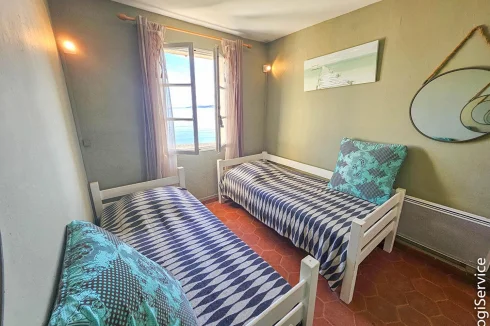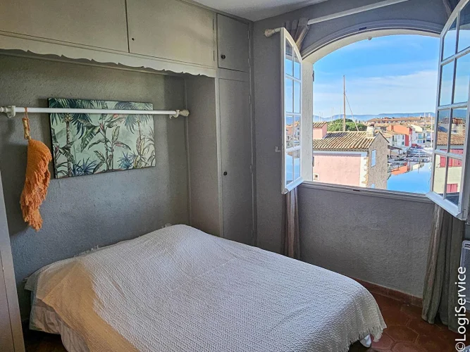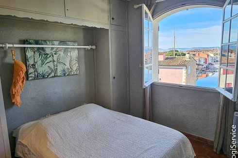 On the 2nd and last floor of this building, a large and bright apartment, crossing, with a breathtaking view of the Gulf of St Tropez from the terrace and a view of the canals of Port Grimaud from the kitchen. Parking nearby. File on request.
