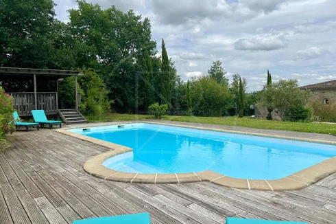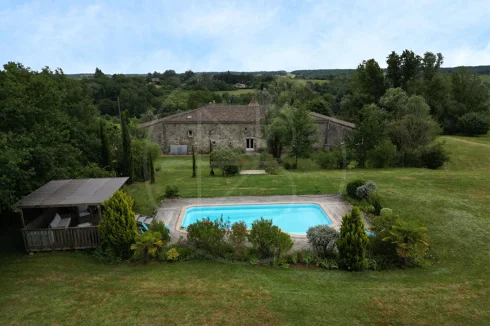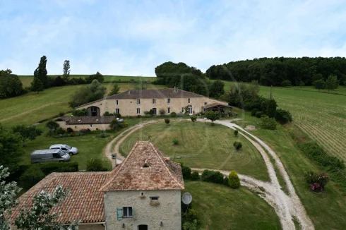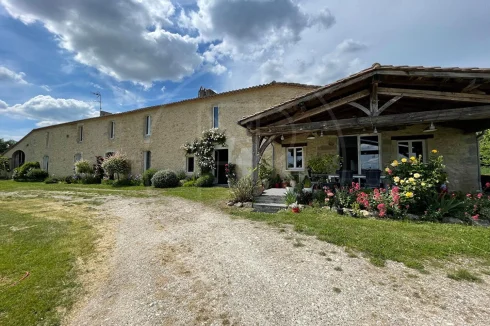 Located in an elevated position just a short drive from the charming bastide town of Monségur, this impressive, south-facing country residence offers an abundance of space, character, and potential. The main house boasts six generously sized bedrooms, thoughtfully arranged to accommodate both family living and guest privacy. On the ground floor, a spacious kitchen with dining area forms the heart of the home. A separate laundry room and Wc add practicality, while the large living room and second lounge both featuring cozy wood-burning stoves provide inviting spaces.