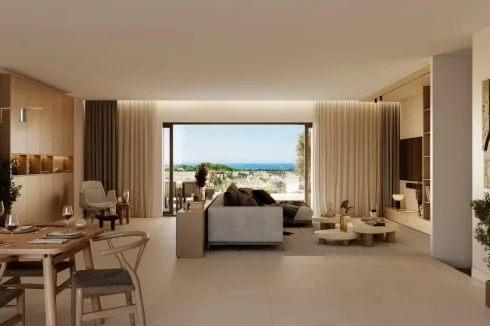 A spacious, single-storey, walk-through flat featuring a bright 35m² living room with open-plan kitchen, 2 superb en suite bedrooms, terrace and private garden. Secure basement garages available. Swimming pool