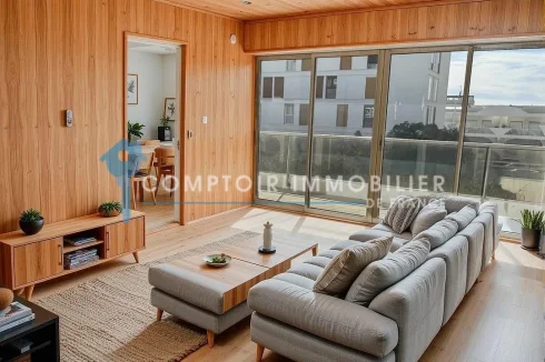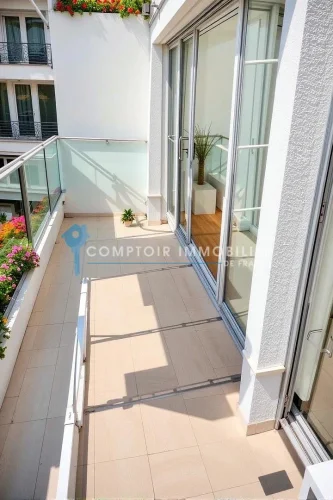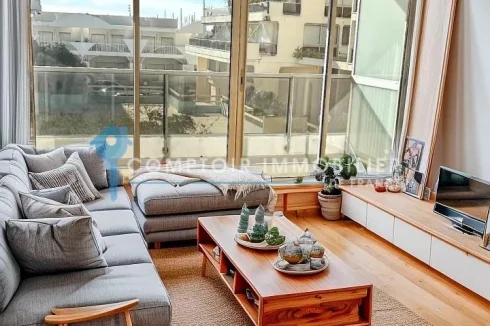 In a residence in the city center of La Grande Motte, 2 steps from the beach? Superb one-bedroom apartment (46 m2 Carrez law), very well laid out and perfectly renovated. Entrance, separate kitchen, living room, beautiful bedroom with dressing room. All spaces are bright. S/W exposure for the living room which opens onto a 10m2 terrace. N/E for the bedroom adjoining a glazed loggia of 10 m2 also. A cellar is sold with the apartment.