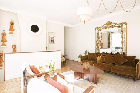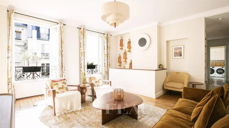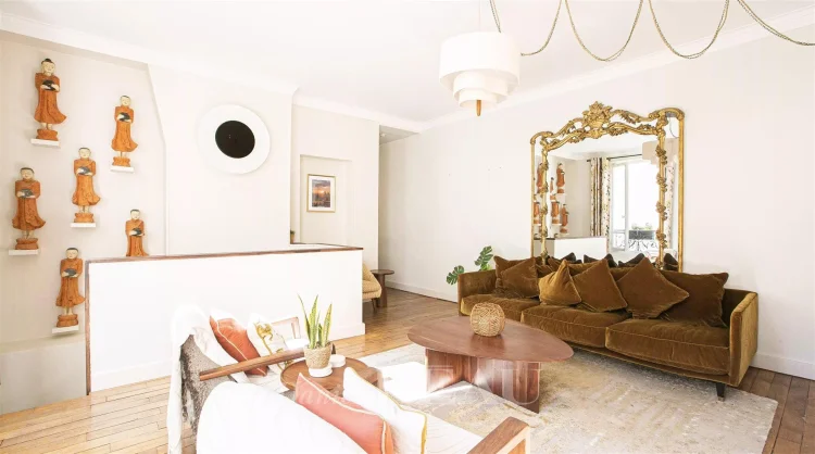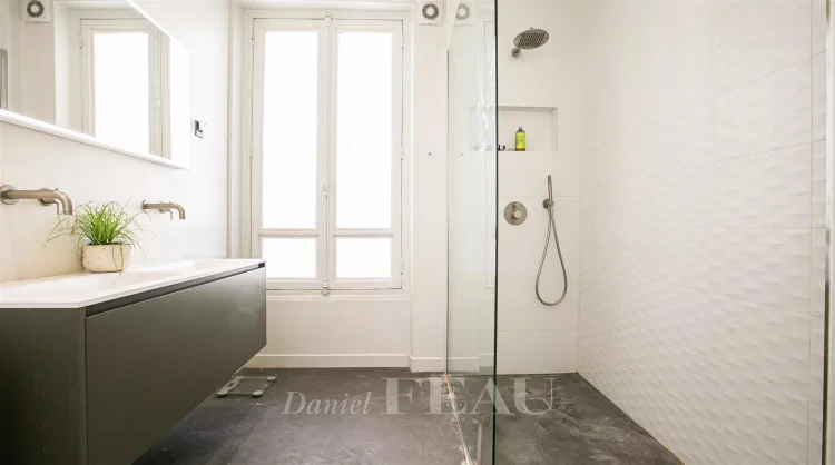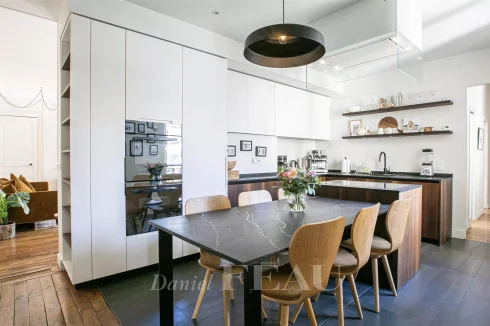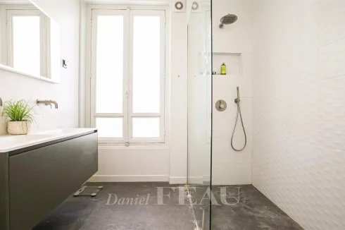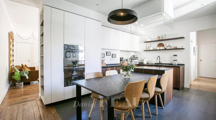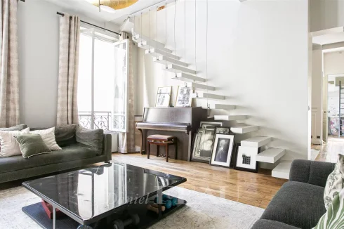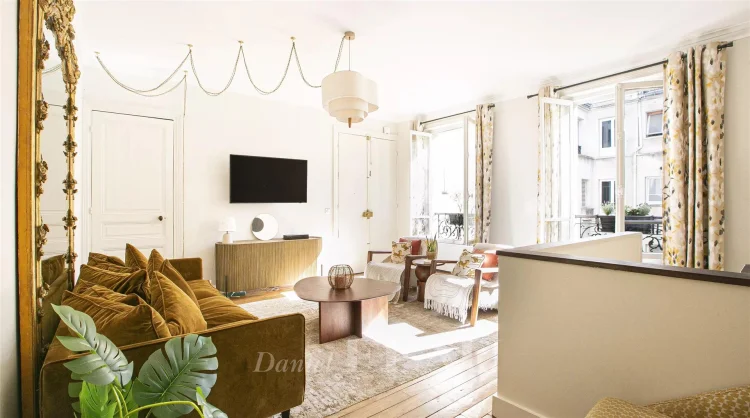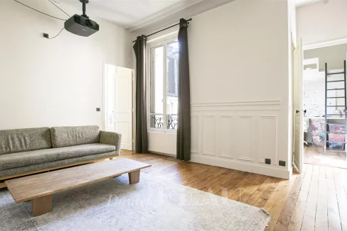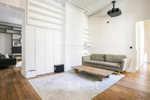 This sunny south-facing duplex apartment is on the 3rd and 4th floors of a fine mid 19th century building located between the Louvre and the Pinault Foundation. Formerly two apartments, it offers 170.65 sqm of living space as defined by the Carrez Law including a living/reception room, a kitchen/dining room, two bedrooms, a shower room, a dressing room, a utility room and a wc.