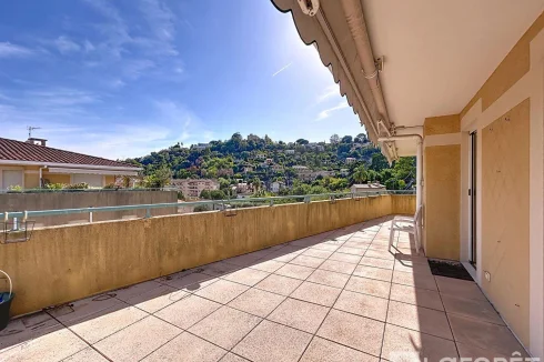 Your Laforêt Menton agency exclusively offers you a magnificent 3-room apartment. Located on the top floor with elevator of a condominium from the 2000s, it benefits from beautiful light and sunshine throughout the day. Its generous surface area (approx. 100Sqm), offers us pleasant spaces and distribution: a very large living room of approx. 46Sqm, an independent kitchen, two bedrooms of approximately 15sqm, a comfortable shower room with toilet, an independent toilet with water point but also 3 outdoor spaces: to the East, a loggia to the right of the dining area, a large south-facing terrace and to the West a 3rd terrace to the right of the bedrooms, for a total of approximately 50sqm. But that's not all, since a large garage box of 18sqm with light and electrical panel, completes this property. Laforêt's opinion: You like light, sun, you like altitude, you like comfort and wide open spaces, No need to go to the end of the world, simply become the owner of this beautiful apartment. Double glazing, electric roller shutters, air conditioning, a box with automatic door, a good quality Dpe, a popular, secure co-ownership, views, yes unobstructed views, no neighbors 's up to you.