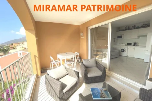 Sole Agent : In Miramar, in a secure, guarded residence with swimming pool, 31 m² studio sold furnished and equipped. It features an entrance hall, a fully equipped kitchen with a living room and a comfortable sofa bed. One bedroom-cabin. Wc. A bathroom. Covered terrace with unobstructed sea view. Garage. Lovely investment.
