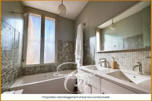 As soon as you enter, you will be won over by a vast living room of more than 35 m2, bathed in light thanks to its East-West exposure. Its timeless charm, combined with its direct opening onto the 100 m2 private garden, makes it a friendly and soothing place to live.