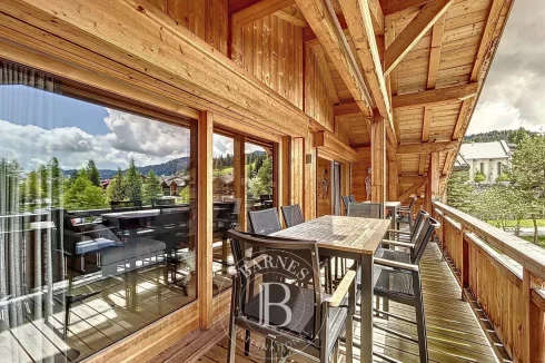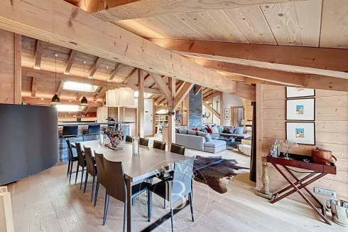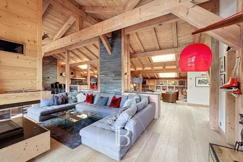 Ideally located just a few steps from the Mont Chéry cable car and a few minutes' walk from the Chavannes ski lifts, this elegant flat with a total surface area of 325 m² offers privileged access to the heart of the village of Les Gets, with its popular shops, bars and restaurants. Spacious and refined, it is the perfect place for a family ski holiday.