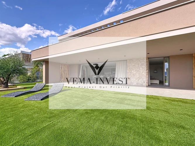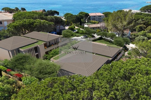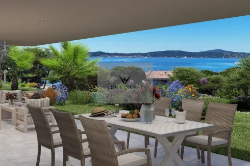 In a very exclusive residence, a stone's throw from the sea with a view in direction of the village of Saint Tropez. Superb T5 Apartment offering 174 m2 of living space as well as a terrace of around 43 m2 and a large private garden. Top-Of-The-Range services and finishes. Equipped kitchen and a closed garage of 76 m2 in the basement. Comfortable, very sought after area near the town center. Delivery september 2025. Reduced notary costs. File on request.