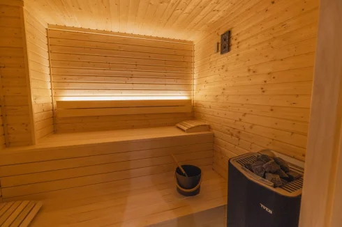 The property has 157.8 sq.m of living space spread over 2 levels. You will find 4 double bedrooms en suite, a living room of almost 49 sq.m with fireplace as well as a relaxation area with sauna and a private garden with jacuzzi.