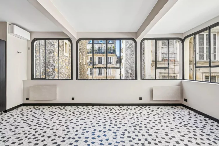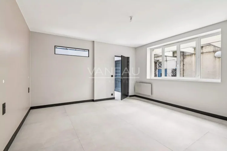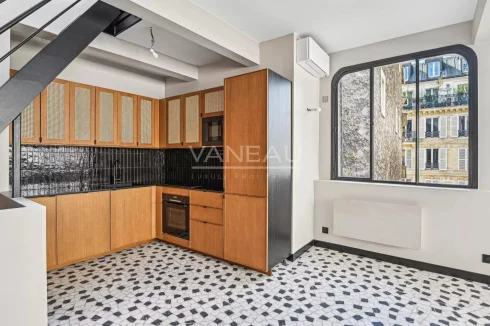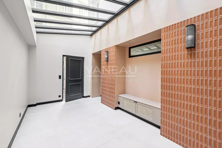Rare - Saint Georges / Rue des Martyrs - Groupe Vaneau offers you, in a small, well-maintained condominium, a beautiful, fully renovated town house of 151.80 m2 Loi Carrez (157.23 m2 on the ground) with a 42 m2 roof terrace.