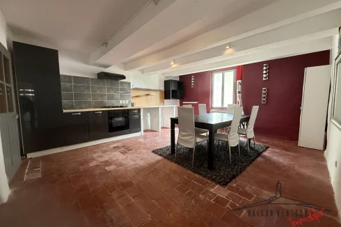 Vaison Ventoux Immobilier offers for sale a charming first-floor apartment in the heart of the village of Le Barroux, at the foot of its magnificent château. Facing south, this 66 m2 apartment includes an open-plan kitchen opening onto a dining room, a living room, a bedroom, an office (or dressing room), a bathroom with a toilet, and a convenient storage room.
