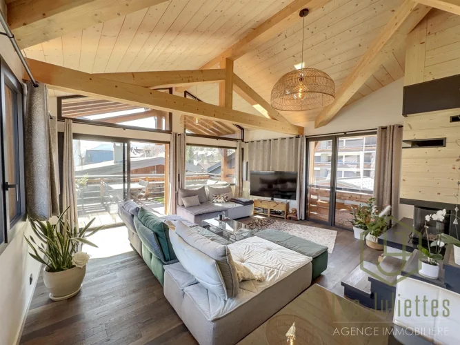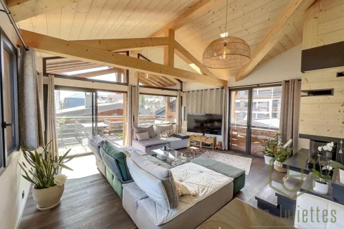 Ideally located in the heart of Les Gets Portes du Soleil, this modern 2019 chalet offers 323 m2 of refined living space, intelligently divided into three spacious and functional apartments: