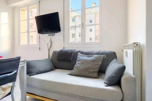 Renovated studio of 26 m², bright (west facing), on the 2nd floor of a popular residence. Sold furnished, with equipped kitchenette, air conditioning, collective heating and private cellar.
