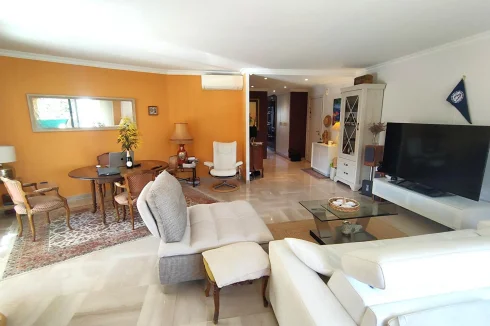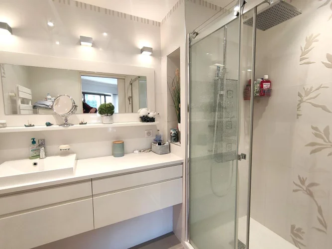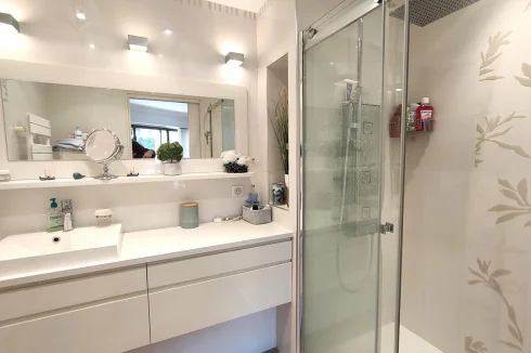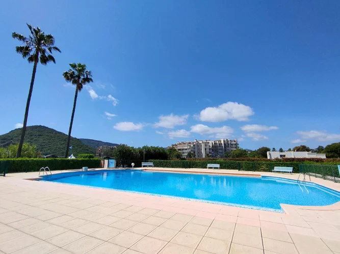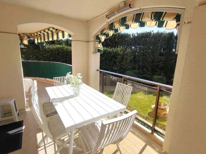 Rare! We present for sale this superb renovated 3-room apartment of 88 sqm, composed of an entrance opening into a very bright living-dining room facing East/South-East, with a beautiful 26 sqm terrace. A separate kitchen with balcony overlooking the marina facing West, a master bedroom with dressing room and shower room, a second bedroom with balcony, a separate shower room, a guest toilet. Fully air-conditioned apartment. In the annex: a garage, a cellar (and the possibility of acquiring an additional 8X3 M ring at the foot of the apartment!). Residence with 2 swimming pools open all year round for residents, almost immediate access to the Old Course Golf driving range. Close to all amenities: supermarket, golf course, beaches, town center, school, public transport. !