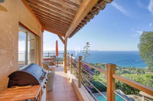 Located in the upper part of Rayol, this rare property offers an exceptional feature: a breathtaking sea view over the Golden Islands and the Bay of Rayol-Canadel. Set on the second and top floor of a charming 1970s Provençal villa, within a small condominium of only two units, this 95 sqm apartment benefits from a completely private entrance, ensuring total independence and peace.