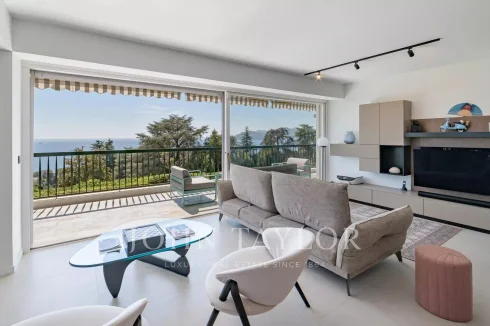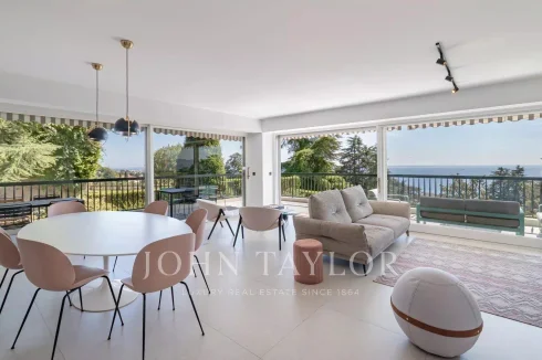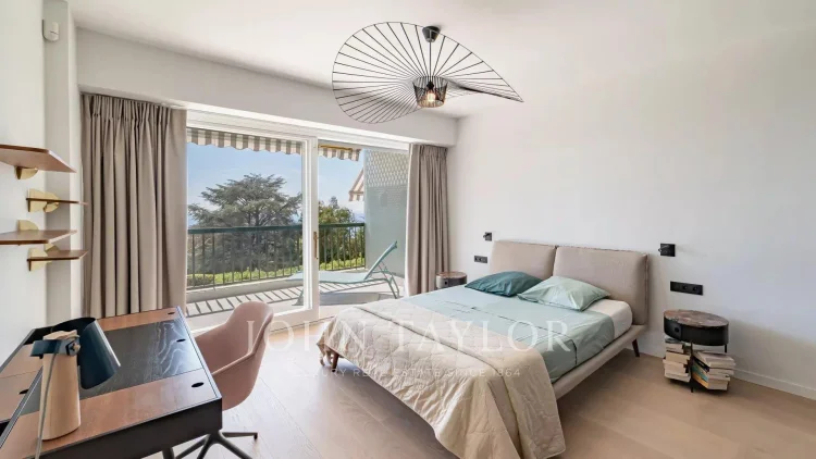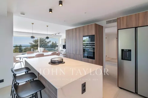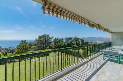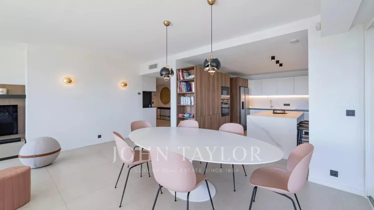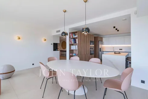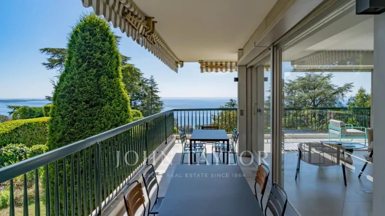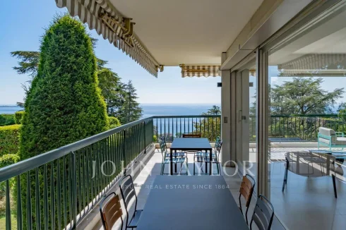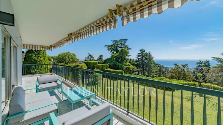 Located in one of the area's most prestigious residences, this vast corner apartment boasts 148.72 m² of living space (Carrez law). Extended by a 49 m² south-facing terrace, it offers unobstructed views of the sea and the residence's grounds.