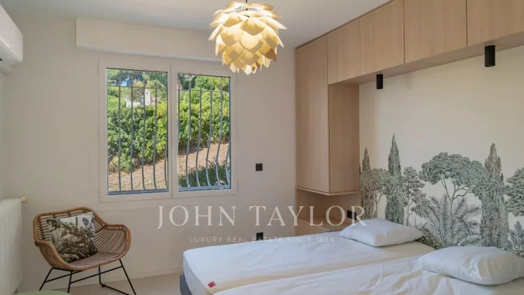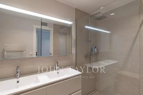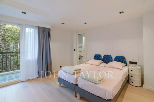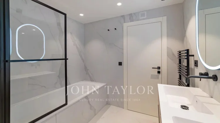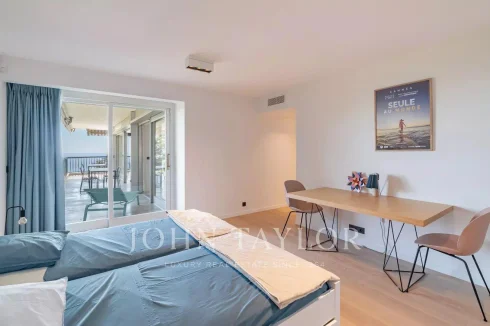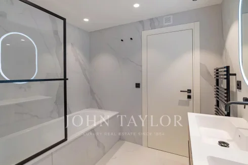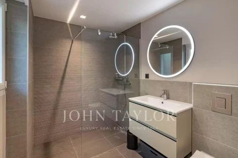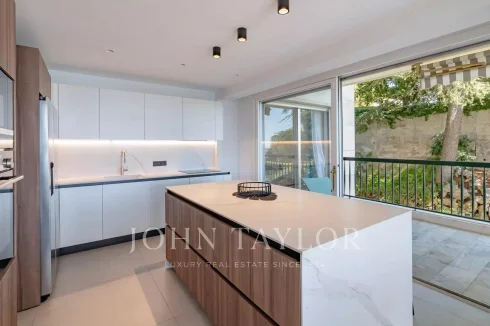 Entirely renovated recently in a contemporary style, it comprises an entrance hall, a living room with open-plan fitted kitchen, a master suite with shower room, dressing room and terrace access, and two further bedrooms, each with storage space and its own shower room.