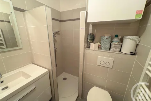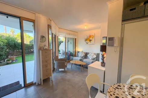 Cavalaire-Sur-Mer Town Centre Charming air-conditioned studio with terrace and garden Ideally located in the town centre, come and discover this lovely studio on the ground floor, fully air-conditioned. It comprises an entrance hall opening onto a fitted kitchen with dining area, a bright living room and a shower room with Wc. The living areas open onto a pleasant terrace and a south-west facing garden, perfect for enjoying sunny days. A large enclosed garage in the basement, accessible by lift, completes this rare property. Living in Cavalaire-sur-Mer means enjoying a privileged lifestyle between the sea and nature. A popular seaside resort in the Gulf of Saint-Tropez, Cavalaire offers a pleasant Mediterranean climate all year round, a lively harbour, magnificent beaches and numerous water sports activities. All this in a friendly, family atmosphere, close to local shops, restaurants and markets.