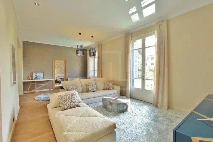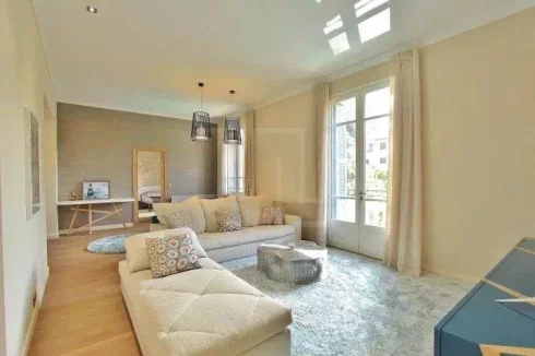 The 130 sq.m apartment has been fully renovated by a renowned decorator offering high quality finishes. It comprises a spacious living room, a dining room, an equipped American-style kitchen, 3 bedrooms, 3 bathrooms and a large 80 sq.m terrace. Other features include air conditioning, internet, ample parking spaces and a cellar. The secure residence boasts a beautifully landscaped communal garden with a swimming pool.