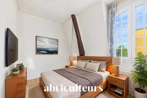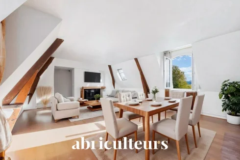 Located on the second and top floor of an elegant former 1920 townhouse, this 103.71 m² (88.22 m² Loi Carrez) apartment offers a rare living environment, combining the cachet of an old building with an unobstructed, unoverlooked view of a verdant garden.